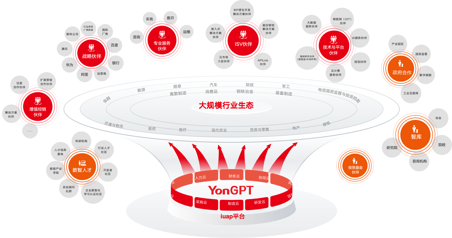 拥有IaaS平台或先进技术,具备自主解决方案能力,提供基于YonBIP平台的联合解决方案,或与用友产品相集成的联合解决方案,业务覆盖全球的战略伙伴;或在特定领域或行业,拥有领先地位或核心技术,基于行业优势,融合用友企业云服务或产品的战略伙伴。